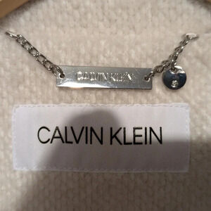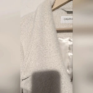 Calvin Klein asymmetrical belted coat. Material furry and soft. Color off white.