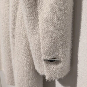 Calvin Klein belted asymmetrical furry off white coat jacket, size L, like new!