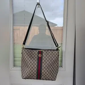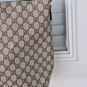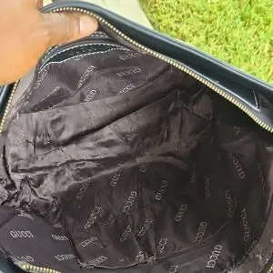 Experience the elegance of Gucci with this cream and black crossbody bag, featuring the brand's signature style. Crafted with meticulous attention to detail, this bag combines luxury with practicality, making it a perfect accessory for any occasion. The crossbody design ensures comfort and convenience, while the timeless color palette adds a touch of sophistication to your ensemble.