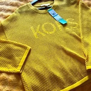 Michael Kors Yellow Crew Neck Sweater with Textured Knit