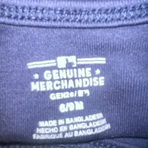 Charming dark blue onesie with Genuine Merchandise branding. Ideal for infants.