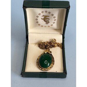 Vintage Jade Oval Pendant & Clover DetailGolplated Chain Boxed
