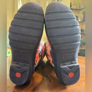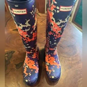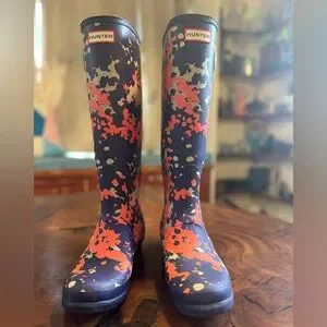 Bold rain boots with a splash pattern. Perfect for rainy days.