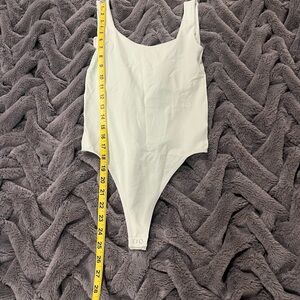 So sleek curve-hugging bodysuit featuring a dipped neckline and low U-back.