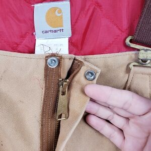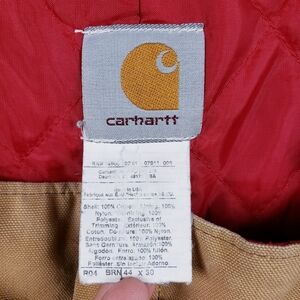 Vtg USA Carhartt R04 BRN Duck Quilted Lined Zip to Hip Bib Overalls 44 X 30
