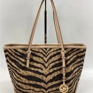 Michael Kors Tan and Brown Zebra Print Tote Bag