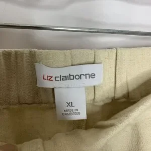 Liz Claiborne Womens Linen Blend Pants Size XL Cream Tan Natural Pockets