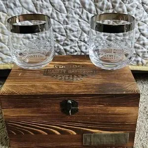Enjoy your favorite drink with these Harley Davidson whiskey glasses. With the Harley Davidson logo etched into the glass, there are a timeless classic and would elevate any bar space.