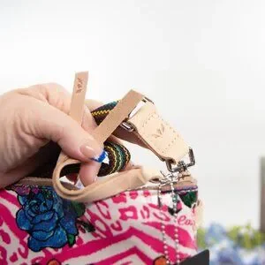 This colorful crossbody bag is ready to take on the day with an adjustable strap and two interior pockets.