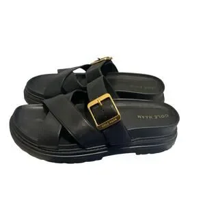 Cole Haan Freya Black Leather Slide Sandals, Women's Size 9.5 B New!