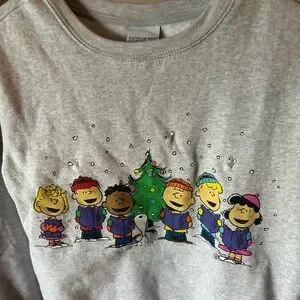 Cozy gray sweatshirt featuring colorful cartoon characters. Perfect for casual wear.