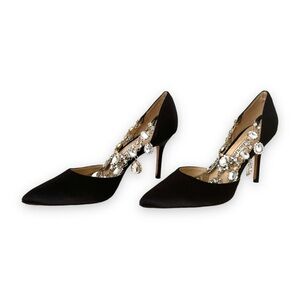 Step into sophistication with these Manolo Blahnik black heels, featuring a sleek pointed toe and a timeless stiletto design. Crafted for elegance, their minimalist silhouette makes them perfect for formal occasions or professional settings.
