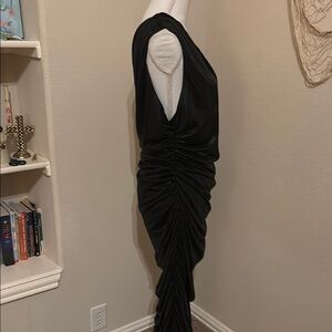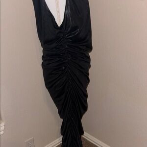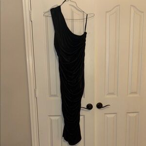 FASHION NOVA - Size 2X. This elegant black one-shoulder dress is perfect for any formal occasion. Its sleek design and sophisticated draping make it a standout piece in your wardrobe.