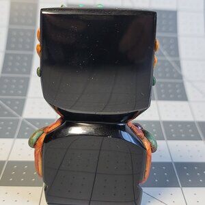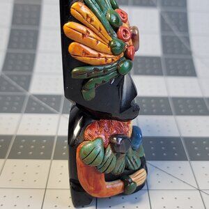 Carved Black Onyx Mexican Aztec Tribal Figurine Applied Decoration And Stones 4"