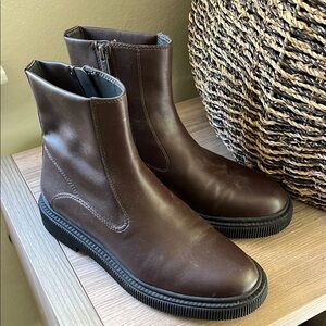 Elegant dark brown ankle boots with a sleek design. Perfect for versatile styling. Comfortable and chic.