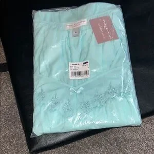 NWT Miss Elaine Aqua Nightgown with Floral Embroidery & Silky Size XL