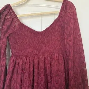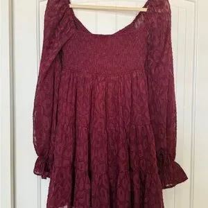 Vici leopard appliqué wine colored flounce smocked & tiered dress. So pretty!