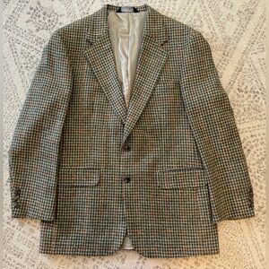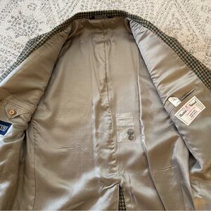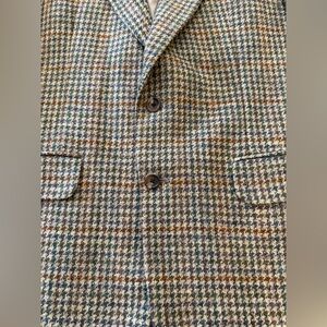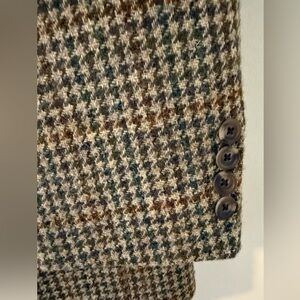 Preowned but in excellent condition. Still has the extra buttons. Houndstooth plaid. High quality. Size 43L. Measurements are approximate.