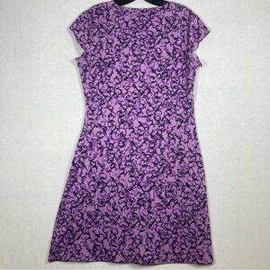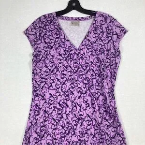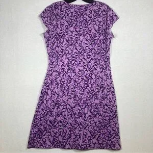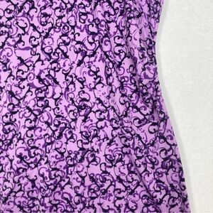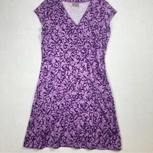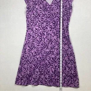The Athleta Purple A-Line Mini Dress is a perfect blend of style and comfort for casual or work settings. Featuring a vibrant purple and white pattern, this dress boasts a flattering V-neckline and cap sleeves. Its A-line silhouette offers a graceful fit, making it an ideal choice for warm weather. Crafted from lightweight fabric, it ensures ease of movement and a chic look.