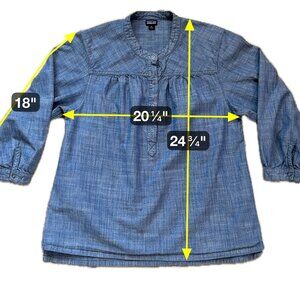 Patagonia Women's Settler's Top Size 8 Chambray Blue 3/4 Sleeve Henley Snaps