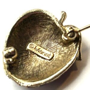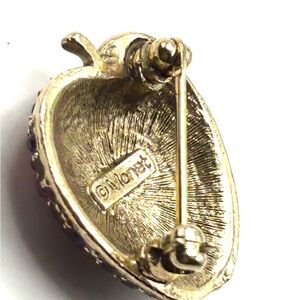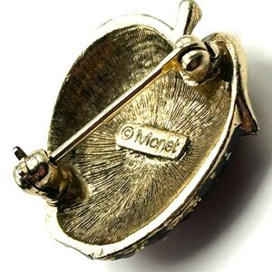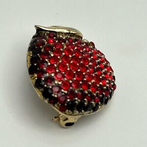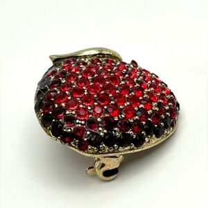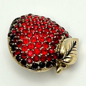 Vintage Monet Red Rhinestone Antique Gold Apple Pin 80’s - 90’s