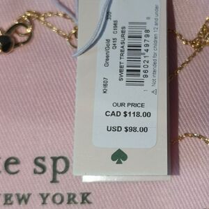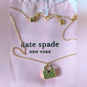 NWT Kate Spade New York Sweet Treasures Mini Purse Pendant Necklace. Peridot colored stones encrust this goldtone handbag miniature. Green enamel straps and black label. This is a throwback to Kate Spade New York's first bag,the "Sam" that debuted in 1993. As shown in the pics there are even the little gold knobs on the bottom that let it stand up on its own. A very cute necklace for the purse lover,the Kate Spade fan or anyone that loves miniatures. $98 retail. Comes in pouch.