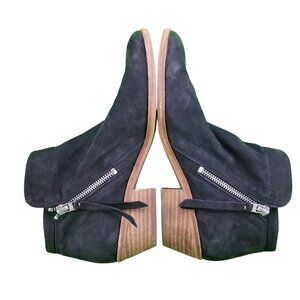 ✅Sam Edelman Ankle Boots Womens 8.5 Black Nubuck PACKER Zip Booties Stacked Heel