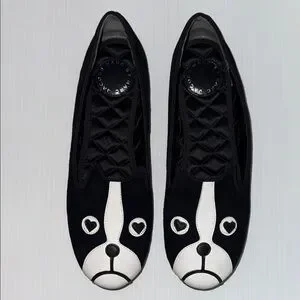 Chic flats with playful dog design. Comfortable and stylish. Perfect for casual wear.