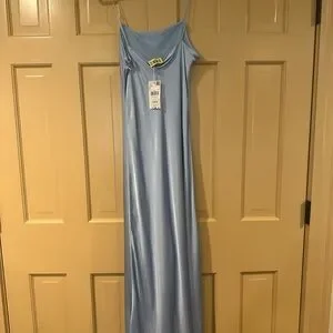 Mango Blue Spaghetti Strap Slip Maxi Dress