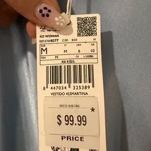 This stunning blue maxi dress by Mango is designed with a sleek slip style and delicate spaghetti straps, perfect for a prom or night out. The sleeveless design and flowing silhouette create an elegant and sophisticated look, ideal for making a statement at any cocktail event.
