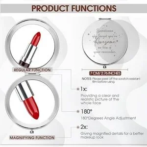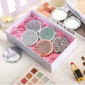 Discover elegance with this double sided compact mirror featuring stunning rhinestone designs. Perfect for on-the-go touch-ups, these mirrors come in a variety of colors including rose gold, silver, purple, multicolor, and teal. A must-have accessory for every handbag.