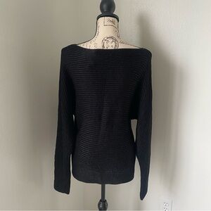 LAUREN Ralph Lauren Women’s XL Shiny Black Rib Knit Boat Neck Oversized Sweater