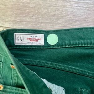 GAP | Hunter Green Cheeky Straight Hi Rise Cropped Jeans Raw Hem (32L/14L) Long