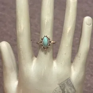 Women’s Silver w Turquoise Marquise Set Ring w Round Silver Accents, Sz 6.5