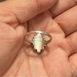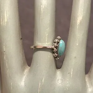 In great pre-loved condition. This elegant ring features a captivating turquoise stone set in a sleek silver band, perfect for adding a touch of sophistication to any outfit. This ring is a size 6.5.
