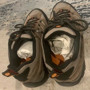 Merrell Moab men’s hiking shoes with a rugged design. Taupe color scheme. Perfect for active lifestyles.