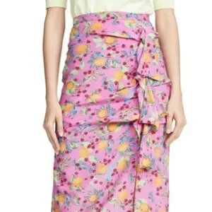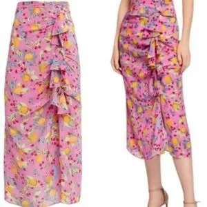 NWOT SALONI Kelly Floral-print Silk Crepe De Chine Midi Skirt in Multi XS $450