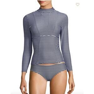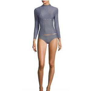 Mikoh Lowers Rash Guard Swim Top Long Sleeve Black & White Stripes SZ Small EUC