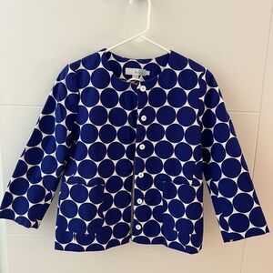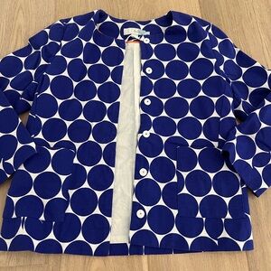 Boden Blue and White Blazer with Geometric Design