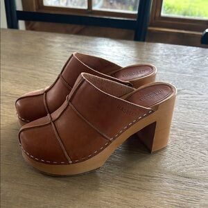 Swedish Hasbeens Tan Leather Platform Mules
