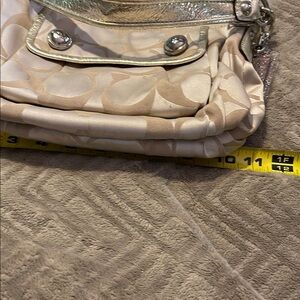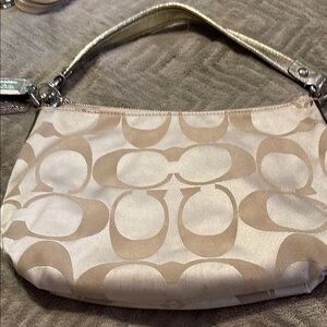 Coach Cream and Gold Shoulder Bag with Signature Monogram
