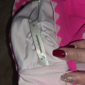 Bright pink swim set with a stylish design, perfect for a day at the beach.