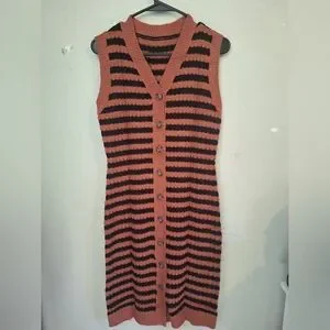 NWOT Striped Black and Rust Button-Down Knit Cardigan