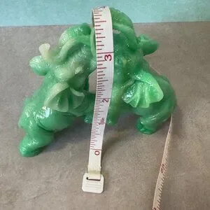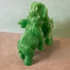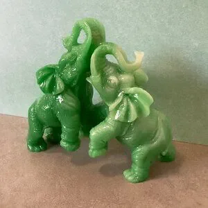 These joyful green elephants look like they're auditioning for a pachyderm dance competition. Perfect centerpiece for a desk or shelf, or your next jungle-themed soap opera.