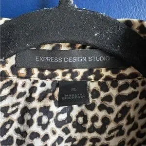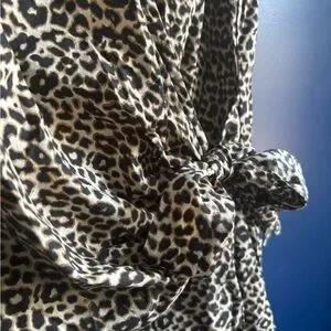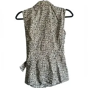 Elevate your style with this sophisticated wrap blouse from Express, featuring a chic black and white leopard print. The notched collar and tie front design add a touch of elegance, while the lightweight fabric ensures a graceful drape. Perfect for versatile styling, this blouse is a must-have addition to your wardrobe.
