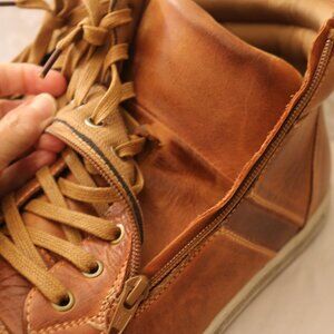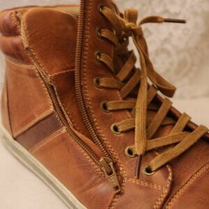 The Prop'et Men's Lucas Hi Skate Shoe in brown, size 13 3E, is a stylish and comfortable sneaker perfect for casual occasions. Featuring an almond toe shape and a zip closure, this shoe offers easy wear and a modern look. Made of leather with a comfortable design, it is suitable for all seasons and provides both style and support for everyday wear. Perfect for men who value both fashion and comfort in their footwear.