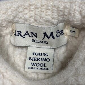 Aran Mor Ireland Sweater Open Thick Cable Knit Cream Merino Women's XSmall