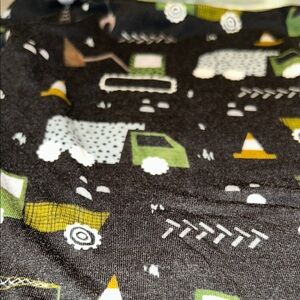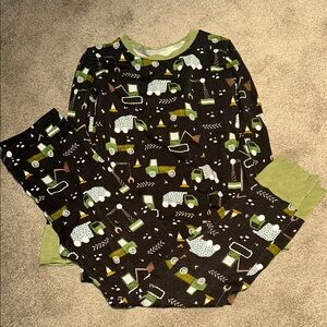 These Little Sleepies pajama sets feature a playful outer space theme with bright green construction against a black background. The whimsical design adds a touch of fun to bedtime, making them a delightful choice for a cozy night's sleep. Washed, never worn