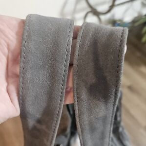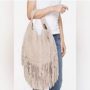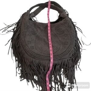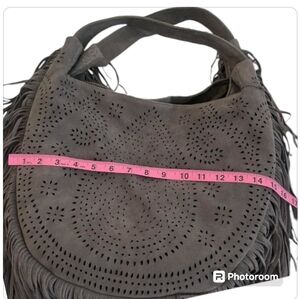 Beautiful grey Suede Fringe handbag. the Fringe all over just makes this bag pop.