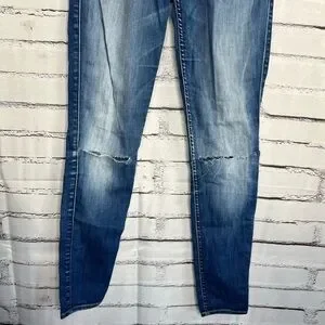 7 For All Mankind Blue Skinny Jeans 25x29 High-Rise Stretch Denim Distressed Y2K